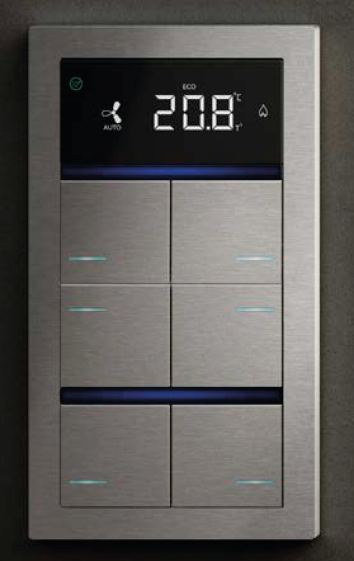 Επίσης η RGB LED μπάρα μπορεί να χρησιμοποιηθεί για status feedbacks για λειτουργίες ελέγχου υγρασίας και παρουσίας (Virtual Holder Logic). Η συσκευή μπορεί να διαμορφωθεί μέσω ETS® και υποστηρίζει επικοινωνία KNX Data Secure.